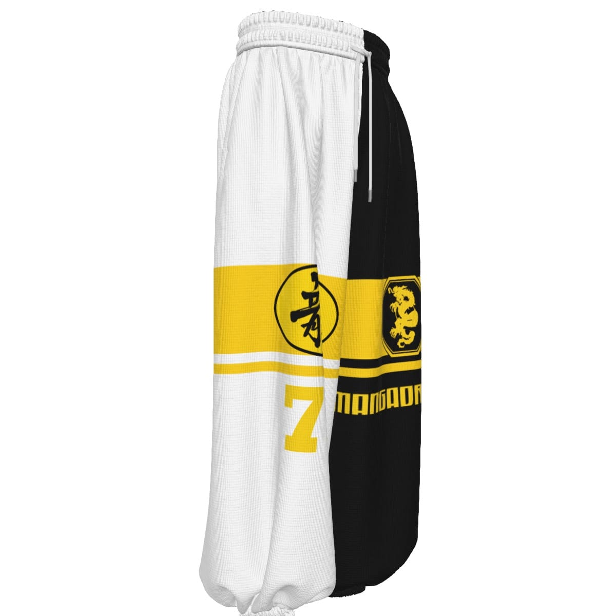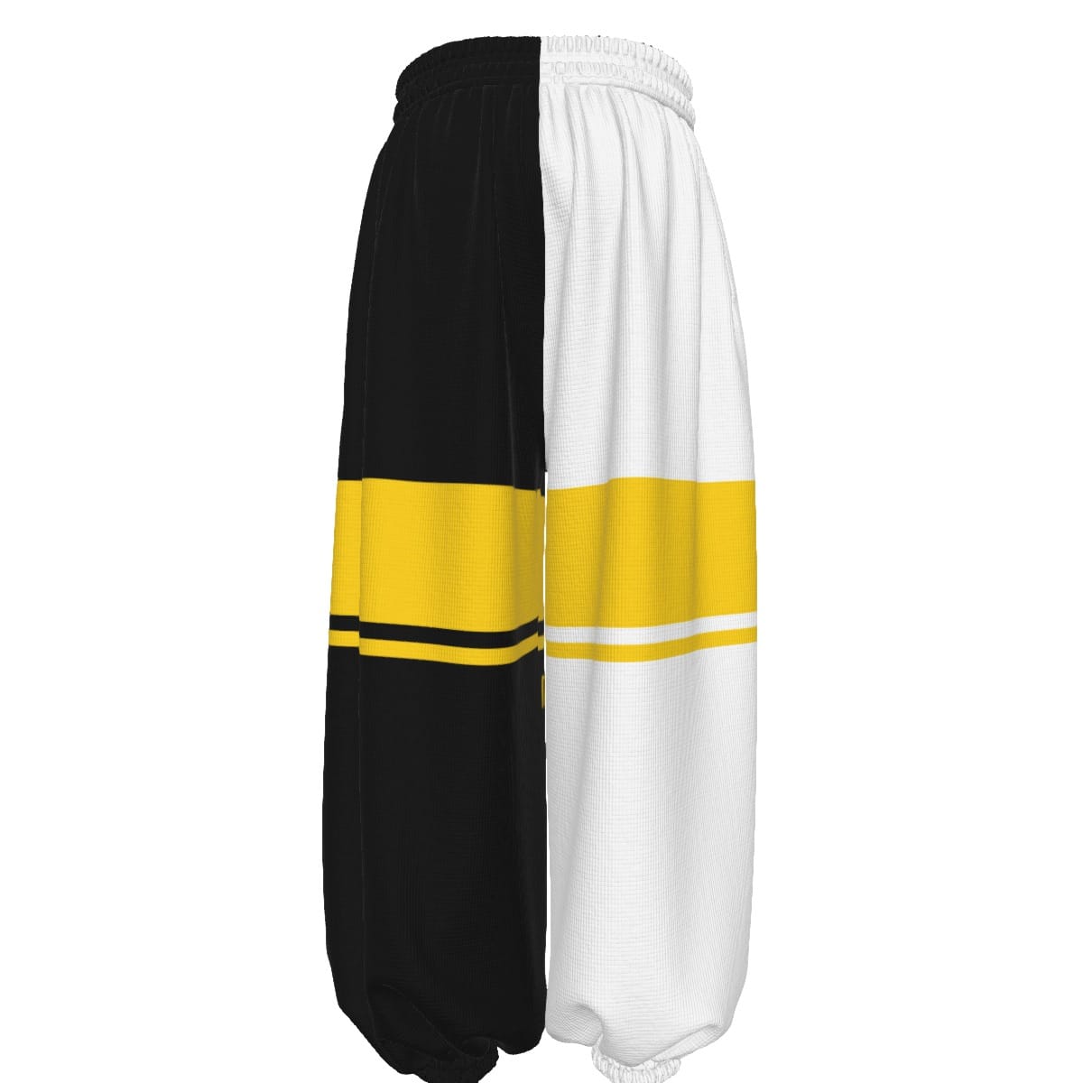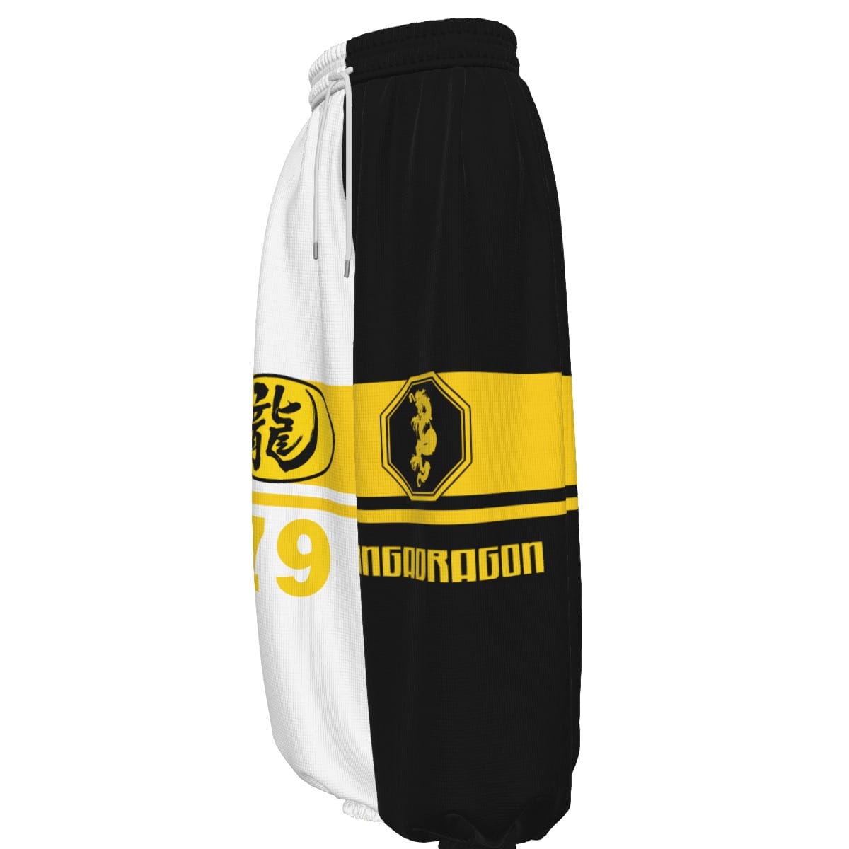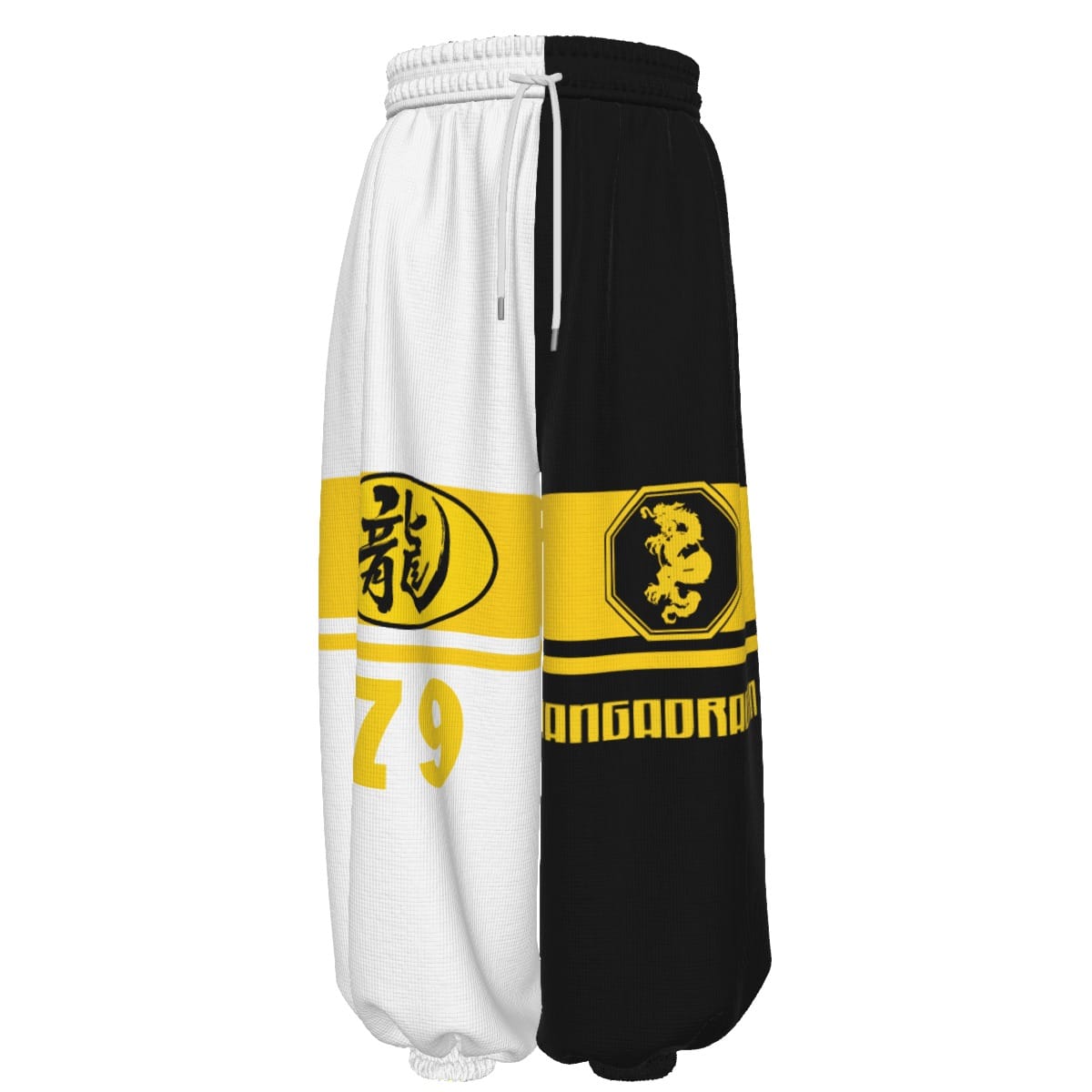 - Wide legs, closed at the feet, with drawstring