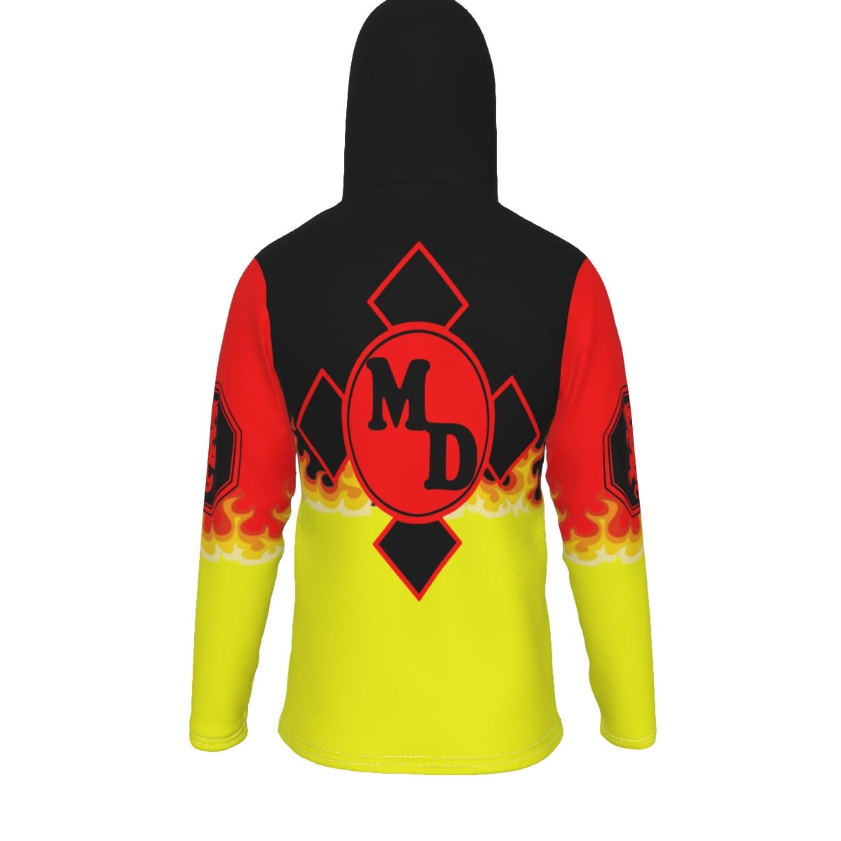 - White drawstring,mask,front pocket and black inner hood